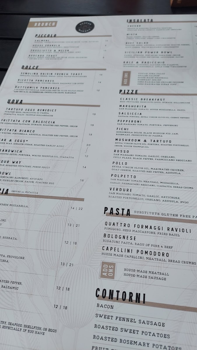 Start your day with options like ricotta pancakes, creamy cappuccinos, or the distinctive tartufo eggs benedict, which pairs delicate truffle hollandaise with perfectly poached eggs. For those seeking a heartier morning meal, the variety of frittatas and breakfast pizzas bring warmth and satisfying flavors, fitting naturally with the easygoing atmosphere of the space.