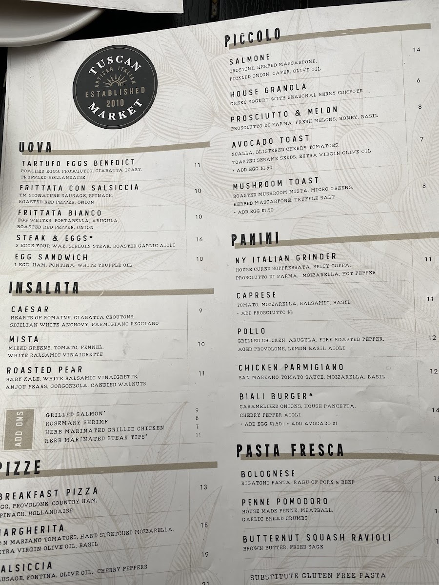 The menu at Tuscan Market in Tuscan Village Salem offers a thoughtful blend of Italian-inspired dishes and comforting café classics, creating a relaxed and inviting dining experience. Whether you’re stopping by for a leisurely breakfast or a casual lunch, you’ll find a selection that feels both familiar and thoughtfully crafted.